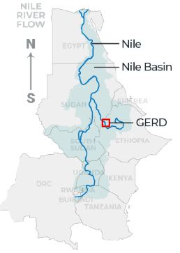 Map of the Nile River flow and the location of Grand Ethiopian Renaissance Dam (GERD) in Africa