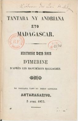 Below is an excerpt of Andrianampoinimerina’s speech, taken from the Tantára ny Andriána, edition 1968. It is an immense collection of the oral traditions of Madagascar collected by R.P. Callet, a Jesuit priest from 1868 to 1881. The book is in Malagasy. A French translation was published in 4 volumes by the Malagasy Academy from 1935 to 1958. The numbers at the head of each excerpt indicate the page numbers of the original.